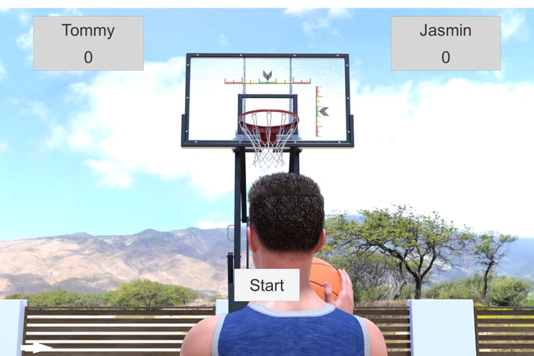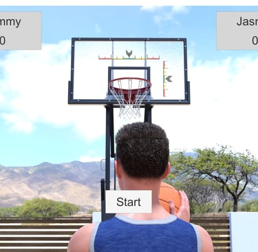 This is a simple game of free throws against Jasmin. It gets interesting when she suggest spicing it up. The mechanics are easy, there are two indicators Target and Power. Click the mouse to stop them when they enter the green area and you score a basket. Points are only scored when you make a basket and Jasmin misses. First to 5 points wins.
